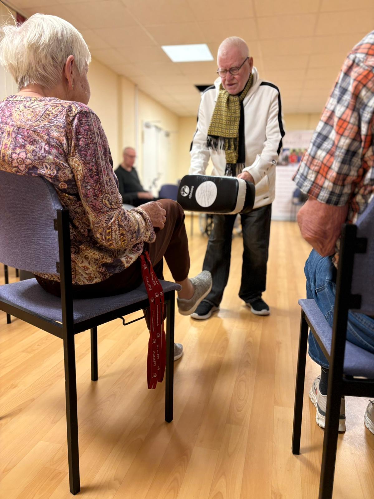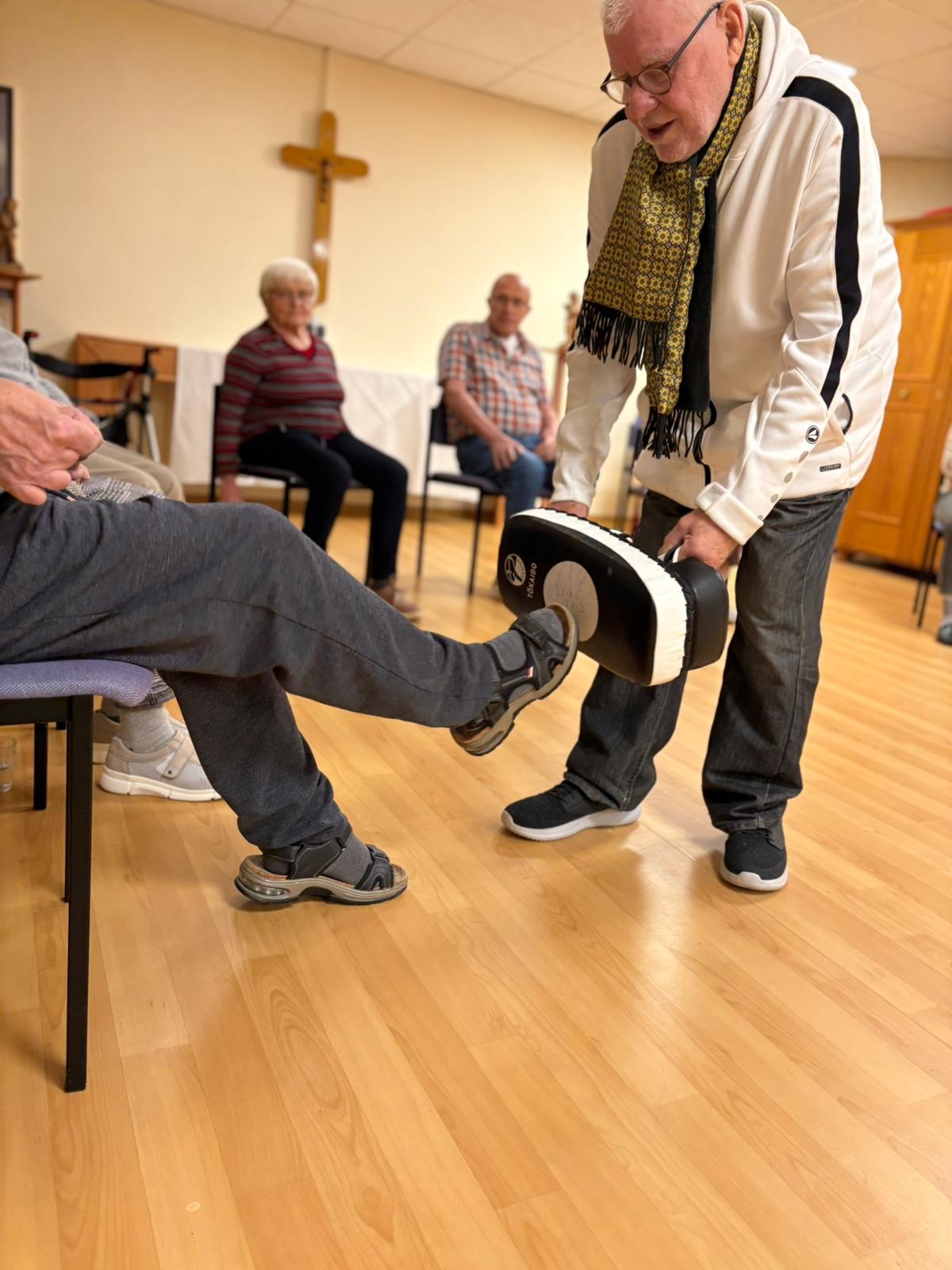 Kursleiter Dieter Jung, Träger des schwarzen Gürtels, kommt wöchentlich in unsere Residenz und vermittelt den Bewohnern alltagstaugliche Selbstverteidigung.